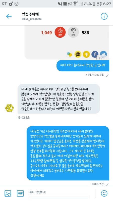 당분간 입장글 올리지 않는게 좋겠다는게 추이계측 의견임. 방금 추이계님 답장와서 얘기해주러왔음. 다들어케생각함?