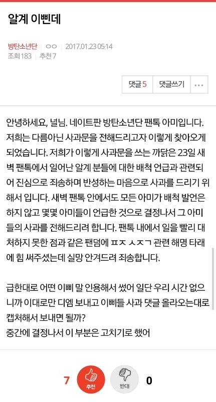 널님에게 보내는 사과문