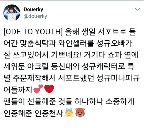 선물 준 홈마 진짜 행복하겟다.. 규가 저렇게 예쁘게 써주고있으니..