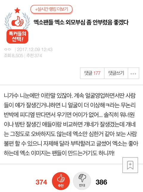 추천수보고가세요~^^~갑자기 타가수잘생긴애랑은비교를왜함?