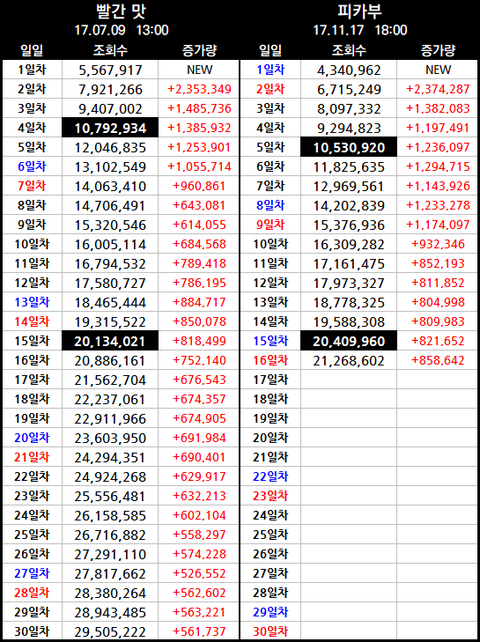 11월 26일 일요일 오후 6시 ~ 12월 3일 일요일 오후 6시 집계 기준