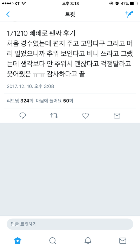 ㅁㅊ나 추울까봐 걱정했음