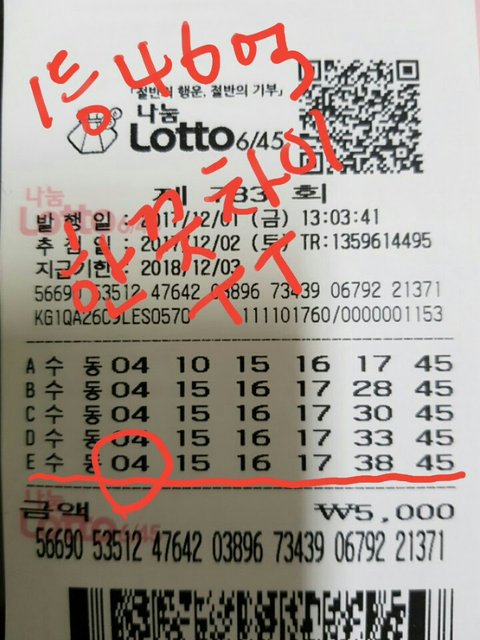 지난 목요일(7일)에 로또3등에 당첨된 걸 알고 당첨금 수령하고