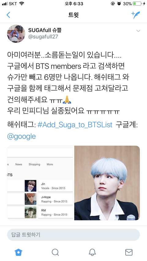 그 B티v 라고 s1k브로드5밴드 암튼 다시보기 그 뭐시기 암튼 거기에도 방탄 검색하면 슈가 빼고나와ㅠㅠㅠㅠㅠㅠㅠ 이거보니까 갑자기 생각났어ㅓ