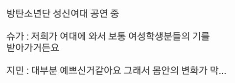 성신여대 학생들보고 대부분은 이쁜거같다면서 얼평질에 여학생들 보고있자니 자기 몸안에 변화가 일어난다는 방탄소년단 3,40대 아저씨가 이렇게 말했다고 생각하면 끔찍하다