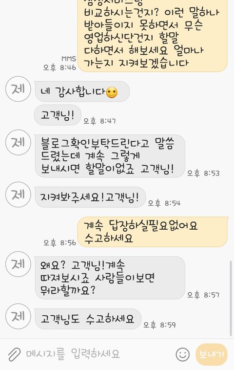 다만 지금 사회에도 이런 갑질횡포가 이루어 지고있다는걸 알리고싶었고, 혹시나 업체사장이 이걸 본다면 본인이 뭘 잘못한지 절대 모르겠지만 사과한번 받고싶네요.