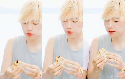 백현이 피지에서 피자 먹는거 넘나 애깅이