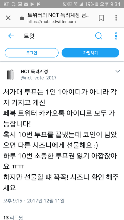 난 트위터로만 10번 했는데 카카오톡, 페이스북 모두 가능한거였네.