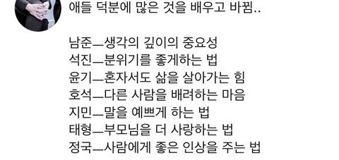 진짜 방탄소년단은 배울점이 많은 사람들인거 같아