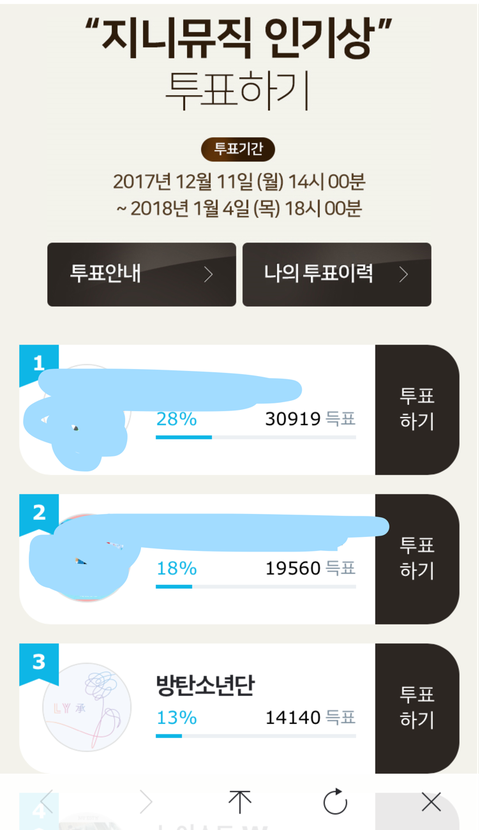 앱스토어에 지//니 깔아서 회원가입 후 투표