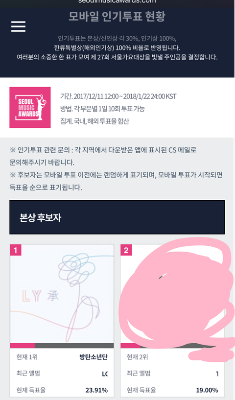 ✔️✔️서갸대는 우리 본상은 1위고 인기상은 아직 4위야