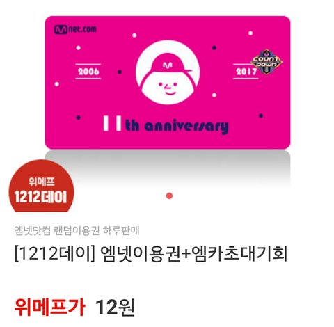 http://mapi.wemakeprice.com/mobile_app/direct_to_app/2994905 없으면 이거 추천 엠/넷 이용권 랜덤이래 12원ㅋ