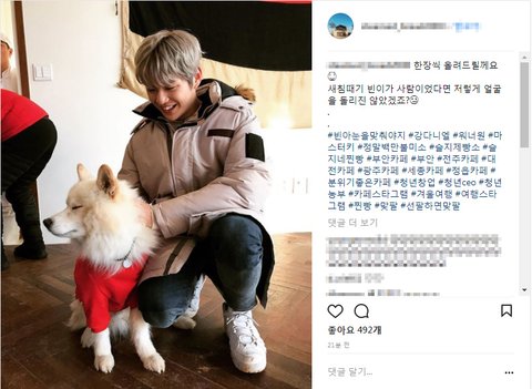 인별에 녤이 강아지랑 찍은 사진 떴오