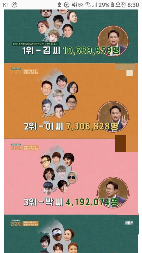 거기서 한국에 있는 성씨 설명하면서 한국 톱 5위 성씨 소개하는데