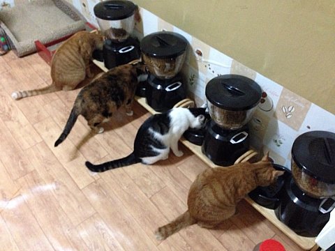 2013년 이직을 하면서 이사도 함께 했어요. 새로운 회사까지의 통근시간이 오래 걸려서 고양이들 식사시간을 제대로 맞춰주지 못 할 것 같아서 자동 급식기를 구매했지요.
