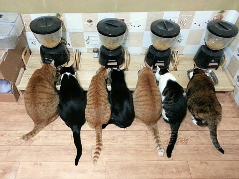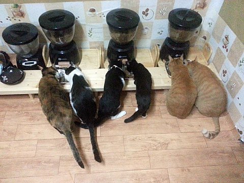 입이 짧고 조금씩 자주 먹는 녀석이라서 고양이가 많을 때는 이래저래 불리한 습관이에요.
