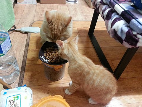 이후에 도로가 합류하지만 같이 식사하는 사진은 없어요. 도로는 페르시안이기 때문에 전용 사료를 급여했거든요.