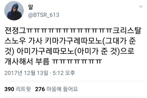 꾸기가 크리스탈 스노우 개사해서 불렀대