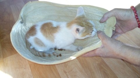 고양이는 키워본 적도 없고, 혹시 엄마 냐옹이가 데리러 오지 않을까 싶어서 선뜻 집에 데려오지 못하고 며칠동안 현관 앞에 상자와 강아지 사료를 놓아뒀는데 도망가지 않고 매일 저녁마다 상자로 돌아오더래요 ㅎ