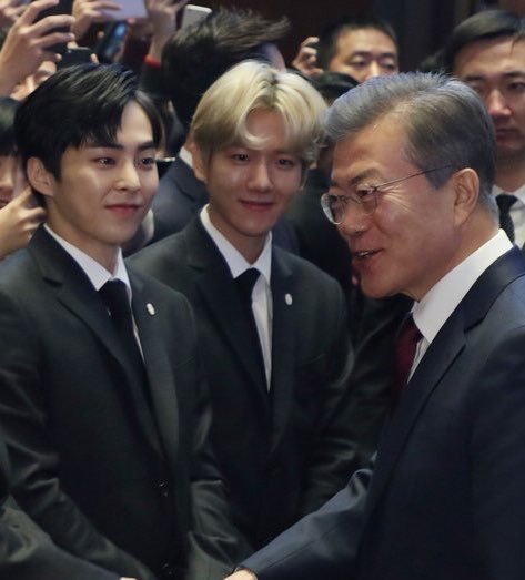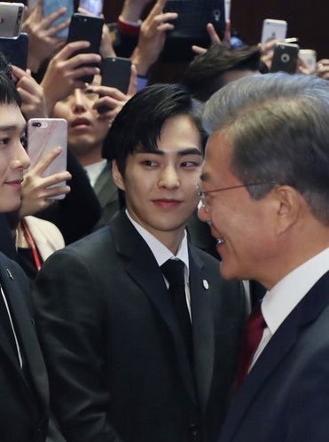 문대통령님과 악수하는 시우민 뒷모습 ㅎㅎ