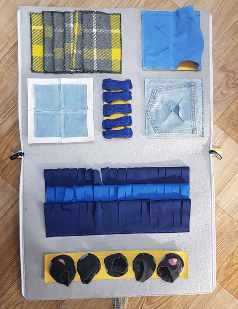 그래서 만들어낸 노즈워크 매트는체육복, 청바지, 천막천, 모직천 등의 자투리 소재를 재활용해서 만들었습니다.