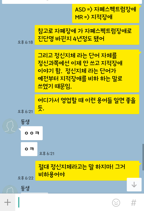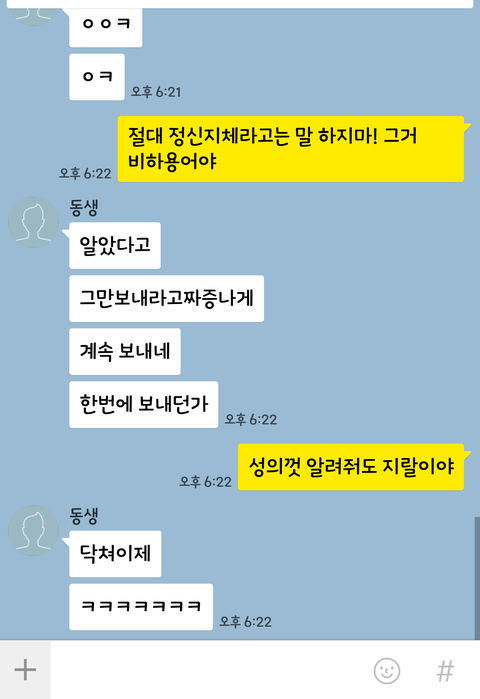 업무특성상 동생이 이것저것 물어볼 때가 있어서 알려주면 이런 식으로 마지막에 저를 좀 짜증나게 합니다.