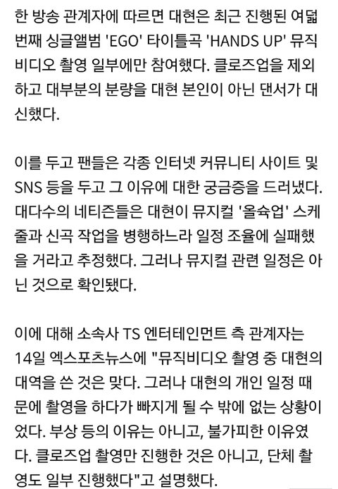 미루다 대현이 뮤지컬 들어가고 뮤직비디오 찍는다고 해서 급하게 찍다가 스케줄이 안 맞아서 대역 썼다는게 말이나 됨?