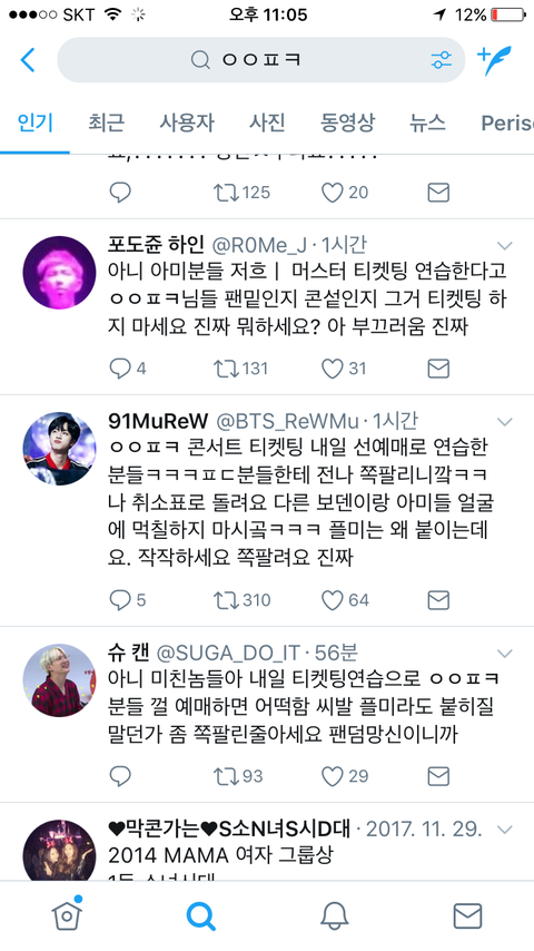 아미인데 트윗에서 저런 아미 발견하면 쌍욕날리겠음. 왜 저런담;;