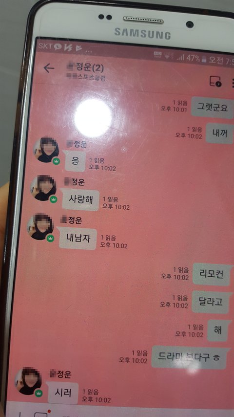 핸드폰을 보니 둘이 대화하는 내용이 가관이 아니였습니다.