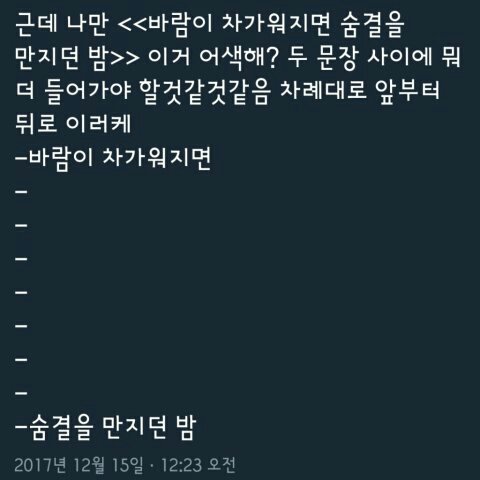 민석세훈/준면종인/백현경수/종대찬열 끝에서 끝으로 짝이고 문장도 끝에서 끝이니까 나이순대로 문장맞춰지는거 맞는가봄?