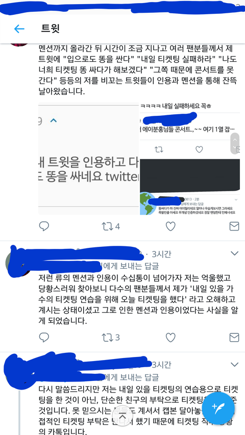 이분이 인용도 많이 당하시고 조리돌림도 많이 당하신분이고 이분 제외 대신 티켓팅 해준것도 아니고 그냥 무개념인 아미도 3명쯤 있는거 캡본 확인함 그 무개념들은 알티타면서 계폭한거같고 그에대해선 같은 아미들이 계속해서 사과하고있고 그외에도 더있는지 같이 수색해주고 있음