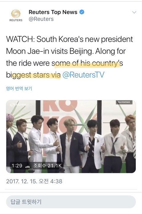 영국 뉴스?인가에서 엑소를