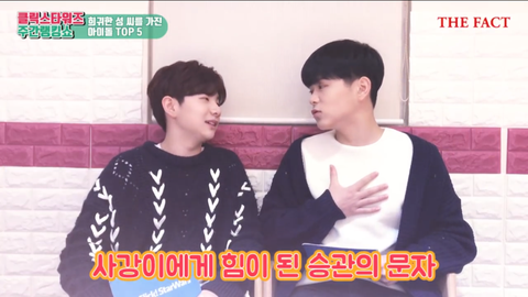 특이한 성 가진 아이돌 영상인데 거기서 승관이 언급 되고 더 동빛 님들 중에 ㅅr강 님이랑 친하다고 떴당 https://youtu.be/N6tJNQGAx1M