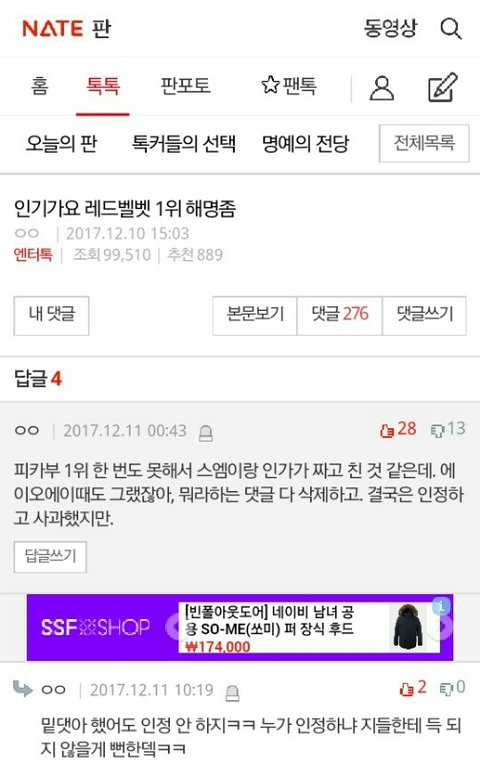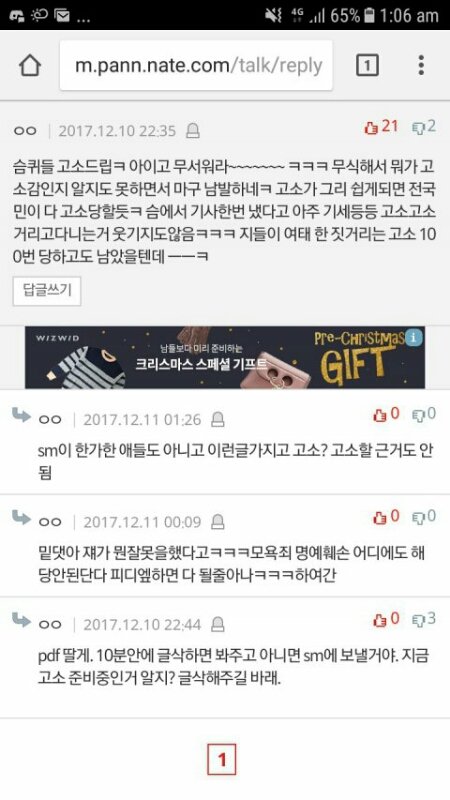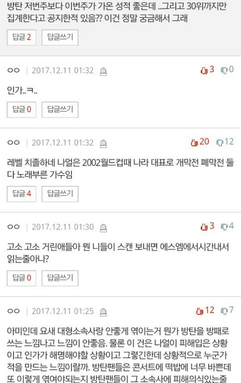 그 인기가요 피카부 1위로 까면서 조롱하고 인격모독한 애들 하나하나 pdf따서 스엠 고소하는 이에일 주소로 보내면 될 듯ㅇㅇ 그 글 들어가서 댓글 다시 읽어보는데 아주 가관이네