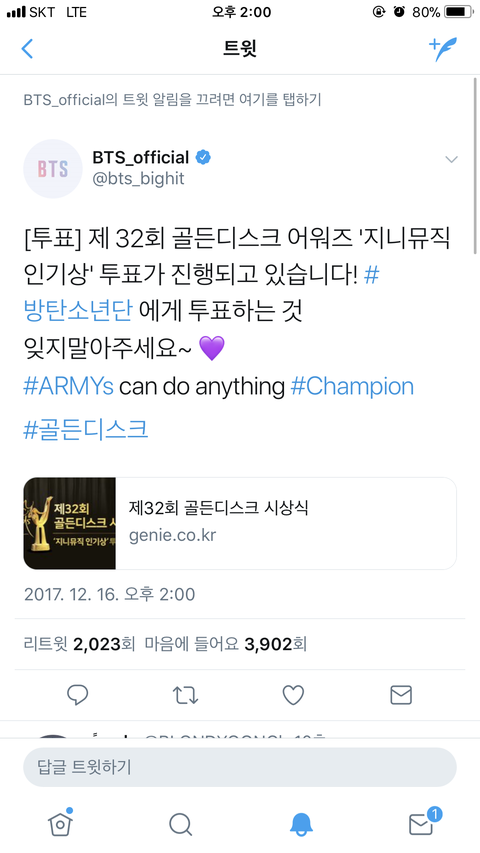오피셜 투표 독려