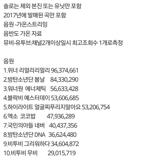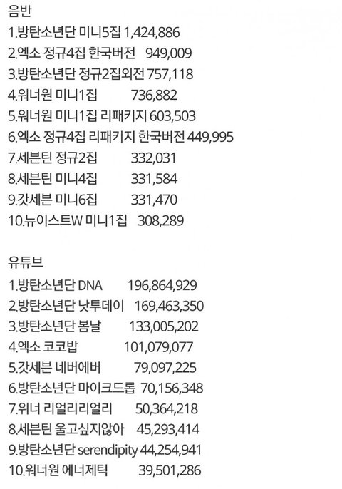 올해 남자아이돌 성적 총정리 (엑소,방탄,워너원,위너,세븐틴,갓세븐 등)