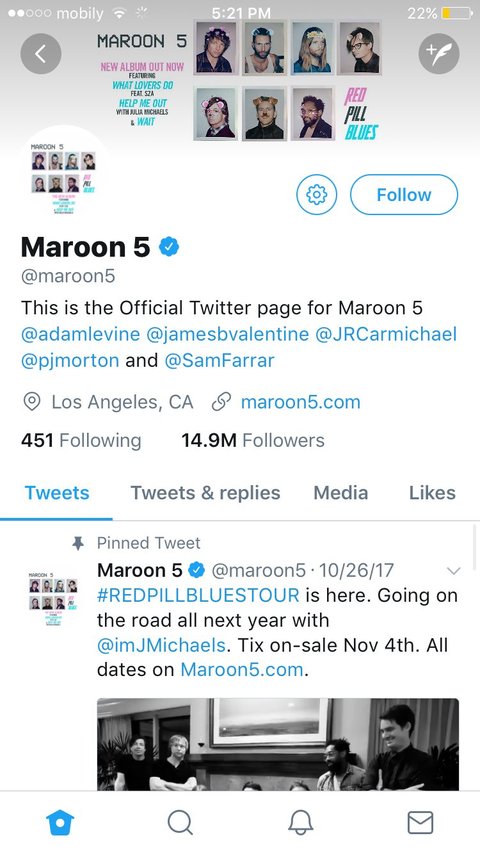 ㅁㅊㅁㅊ 마.룬5가 우리애들 팔로우했어