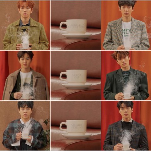 민석이만 커피잔 높이 들고있는거