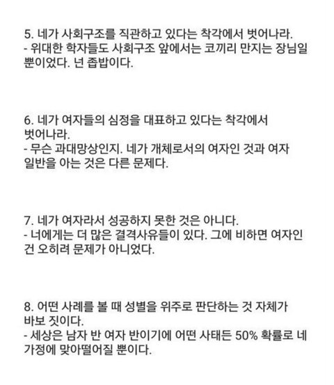 아무 상관이 없는 일들도 여혐 때문이라고 하면서 자기가 성적고정관념 가진 줄도 모르는 애들 보면 ㄹㅇ 한심함 그런 애들이 페미라니ㅋㅋㅋㅋ 엠마 왓슨이 지나가다가 비웃을 듯.. 마지막으로 왜 한남이라는 말 쓰면서 자기 메갈이냐고 물어보면 메무새 라면서 엄청난 부정을 할까..? 진짜 이게 제일 궁금함 메갈소리 듣기 싫으면 메갈용어를 안 쓰면 되는데 왜 한남 못 잃을까ㅋㅋㅋㅋ....
