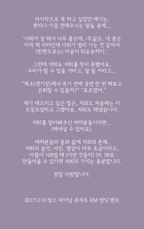 너무 고마웠고 이제는 진심으로 방탄 잘되길 바랄게