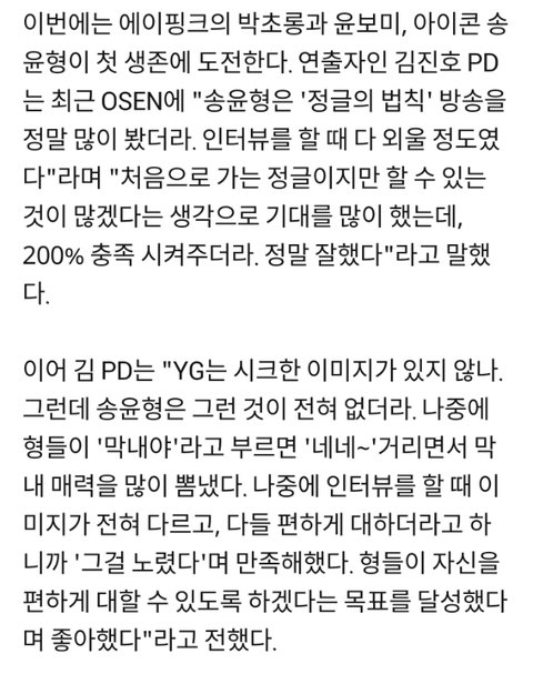 사실 처음 입덕했을 때는 눈에 잘 띄지 않아서 아는 것이 많이 없었어. 그런데 시간이 지날수록 정말 좋은 사람, 좋은 멤버라는 것을 알게 되었어. 공연을 끝내고 피곤해서 금방이라도 잠에 들 것 같아도 브이앱 켜서 10분이라도 얘기 나누는 멤버야. 얼마전 팩 방송이라는 컨텐츠로 브이앱을 찾아왔었어. 팩을 붙인 채로 브이앱을 하다가 30분이 넘어가자 팬들이 걱정을 하고 이제 떼어야 하지 않느냐 라고 하니 윤형이는 이거 떼면 방송 꺼야 한다며 아직 촉촉하다고 계속 댓글을 읽어주고 소통해줬어. 다른 멤버들이 궁금하다는 댓글에 다른 멤버들에 대한 여러가지 일화도 말해주고 직접 찾아가서 보여주기도 하는 착한 멤버야. 요리를 좋아하는 터라 가끔 음식을 만들어서 멤버들에게 주기도 하고 요리에 관한 여러가지 컨텐츠로 브이앱에서 보여주기도 해. 최근에 정글의 법칙에 나왔었는데 아이코닉은 잘할 수 있을까 하고 걱정했지만 정말 열정맨 답게 열심히 하고 왔더라고. 항상 뭐든 열심히 하는 멤버야.