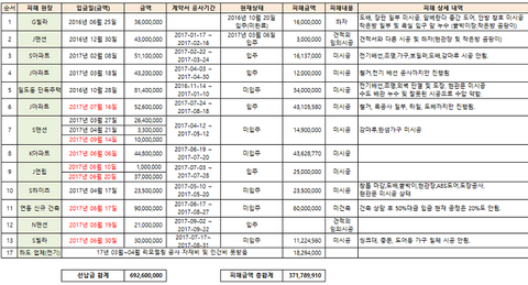14,15,16번에 있는 피해자는 현재 공사중이기 때문에 하루라도 더 공사를 해야 피해금액이 줄어드는 상황이라서 부득이하게 숨기고 오픈하게 되었습니다.