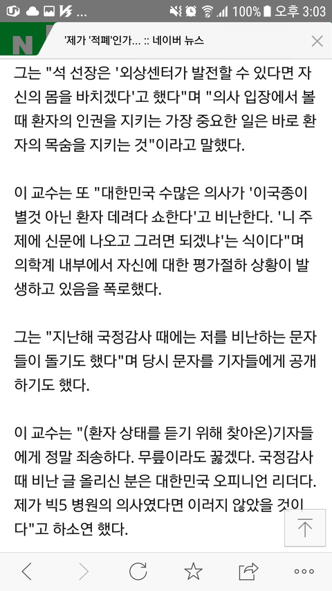 정말 애통합니다. 이렇게 평생 환자만을 위해 애써오신분한테 갖가지 공격과 조롱을 하였군요..