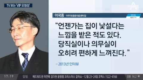 ◇ 김현정> 지금 화석을 새기는 기분으로. 그러니까 후세에 뭔가 보물을 남기는 기분으로 그런 사명감으로 일하고 계시는 거예요. 그러면 집에는 가세요, 이국종 교수님?
