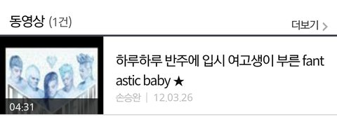 보다시피 빅뱅분들의 노래를 커버한 영상인데, 현재 네이트판에 검색해서 나오는 영상에는 안들어가져서 그 당시에 웬디 영상을 복사 하셔서 유튜브에 올려주신분의 링크를 가져왔어.