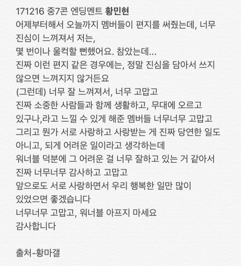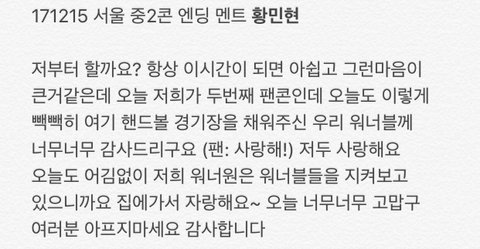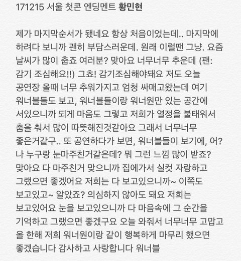 이 멘트는 ㅍㅋ을 갔던 ㅇㄴㅂ 뿐만 아니라 안방에서 ‘민현이를 응원하는 미녀단들에게’ 전하는 멘트가 아니었을까 싶다 ㅎㅎㅎ 밤되니 센치해진다 ㅋㅋㅋㅋㅋㅋㅋㅋㅋ