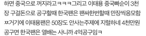 ㅋㅋㅋ얜 진짜 팬질초보 티낸다 이태용 인기 100배인 세훈바도 한국이랑 싸움나서 욕 ㅈㄴ먹었는데 고소 전혀안됐음 트위터에 세훈바 쳐봐라