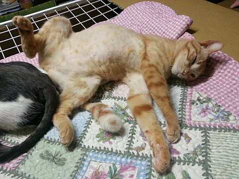 중성화 수술 후 사진입니다. 키이는 넥카라를 안 해도 핥지 않아서 괜찮았는데