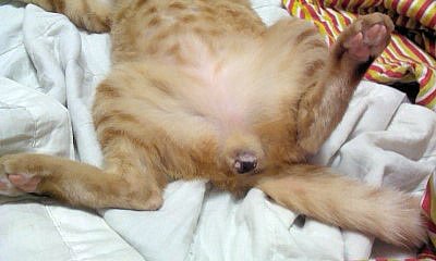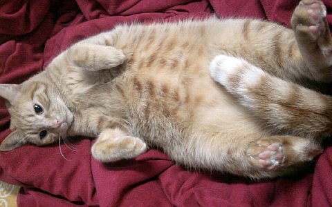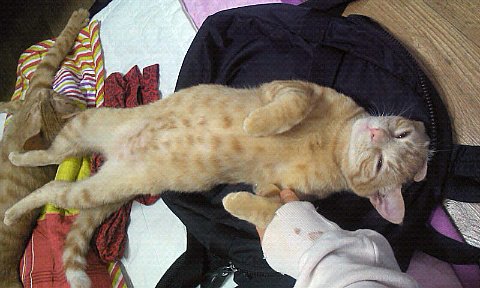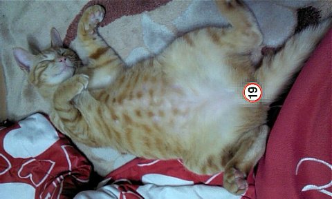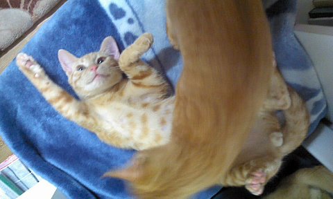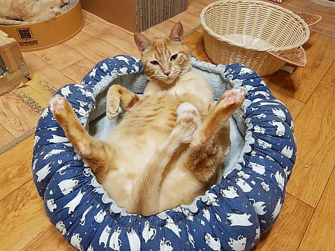 드러눕기를 좋아했던 로이. 분홍색의 탄탄한 뱃살을 찍었으나 키이의 방해로 실패...