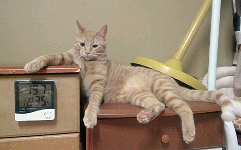 로이가 즐겨 하는 포즈에요. 표정은 시크하게! 뱃살은 통통하게!
